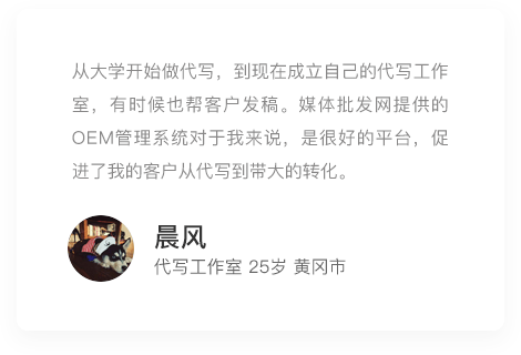 没文案?没时间发布?交给我们!专业写手专业规划发稿,给您省时省心!
